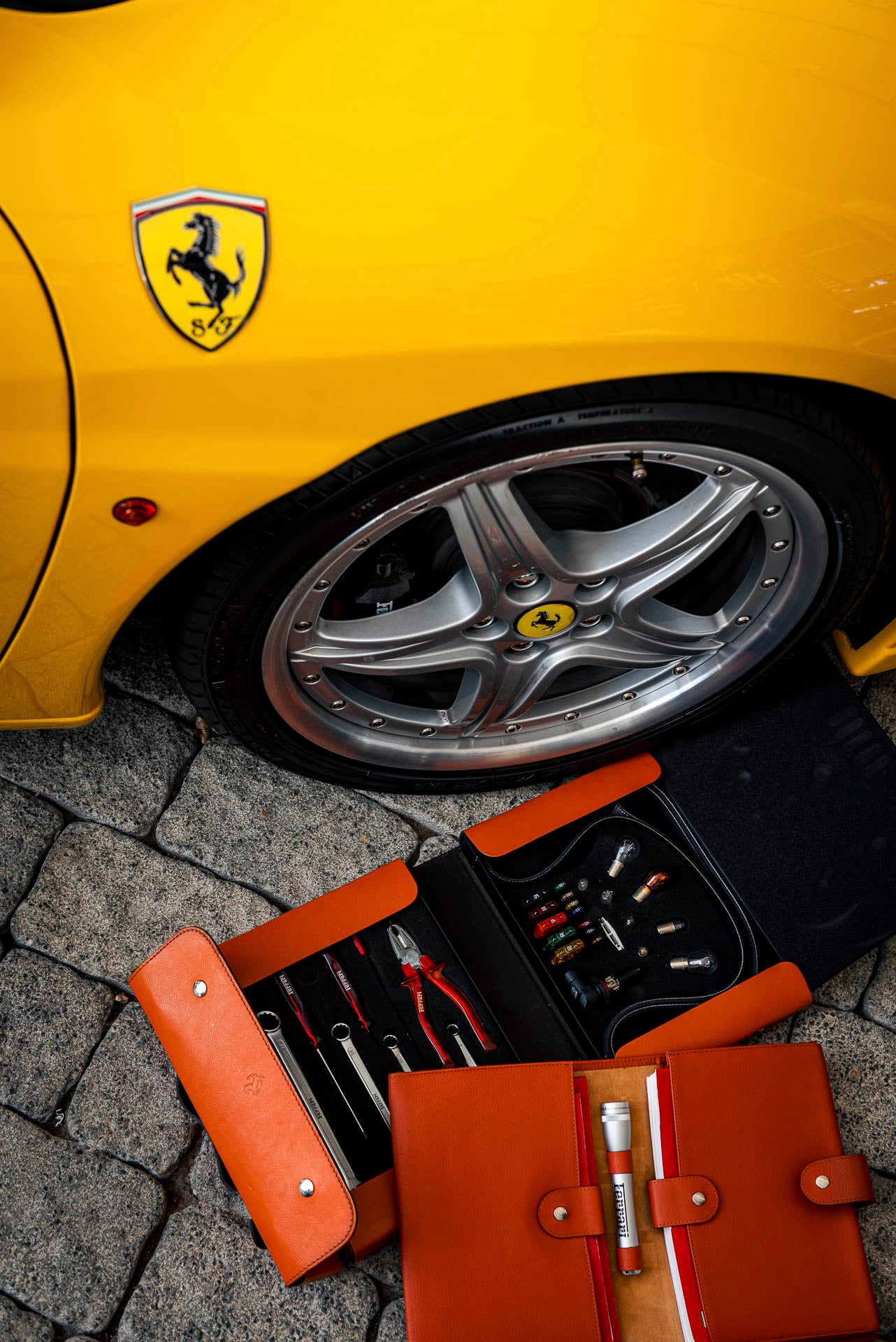 What more is out there to collect? How can you take your classic or future classic Ferrari to the next level? Vintage merchandise and accessories, designed and developed with the same passion and dedication as the cars, offer a unique connection to the brand. Toolkits, suitcases, leather document pouches, keychains, watches, and pens—there’s a rich history to explore.