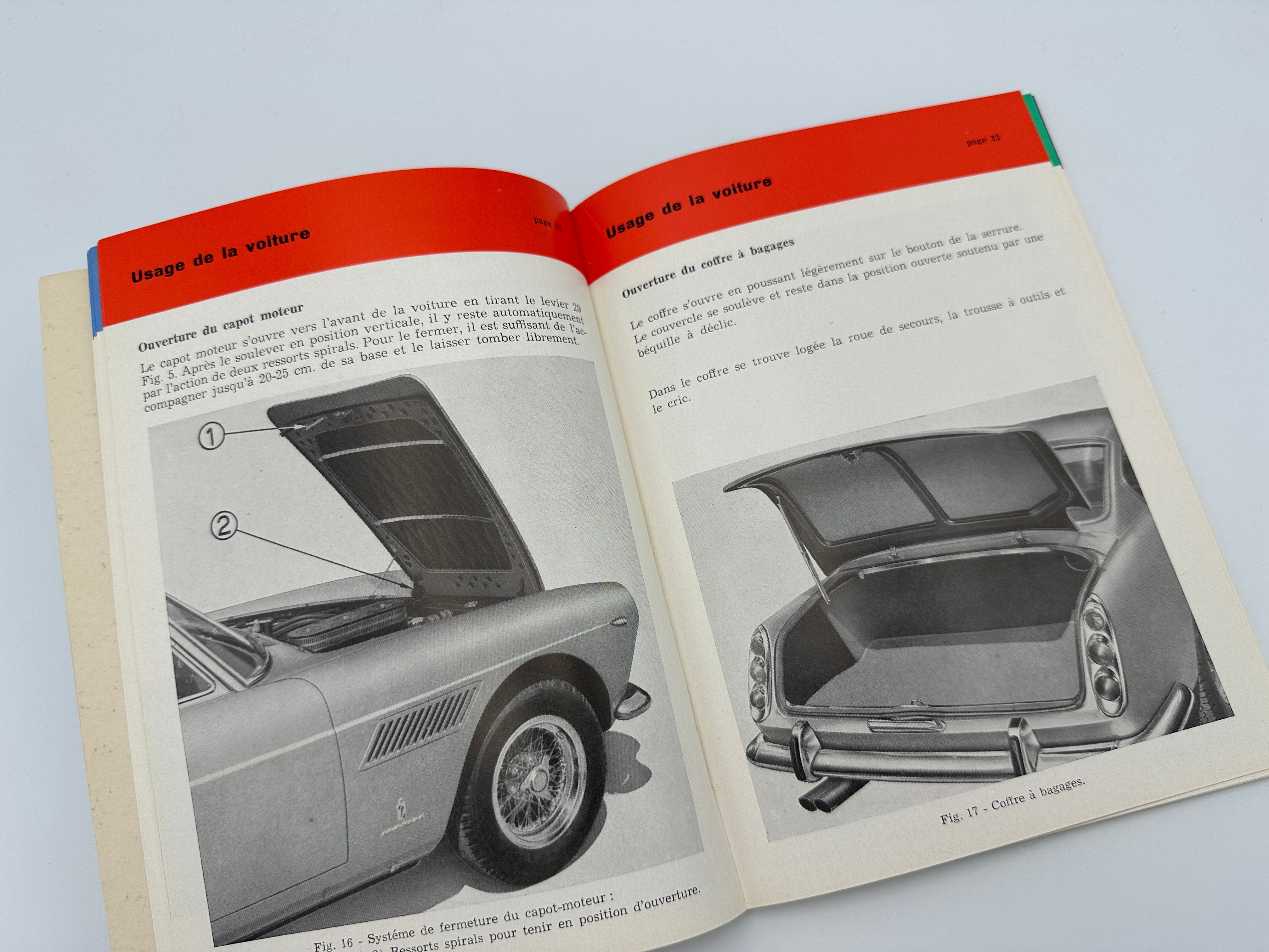 This original owner’s manual (usage et entretien) published in March 1963, is suitable for the Ferrari 250 GT/E Coupe Pininfarina 2+2 and most Ferrari 250 models of the same era. Printed in Italy in French language, it provides essential operating and maintenance information. The manual is in very good overall condition, with only slight traces of age and use, and contains no missing or loose pages. A rare period-correct item and an excellent addition for completing any classic Ferrari from the 250 series.