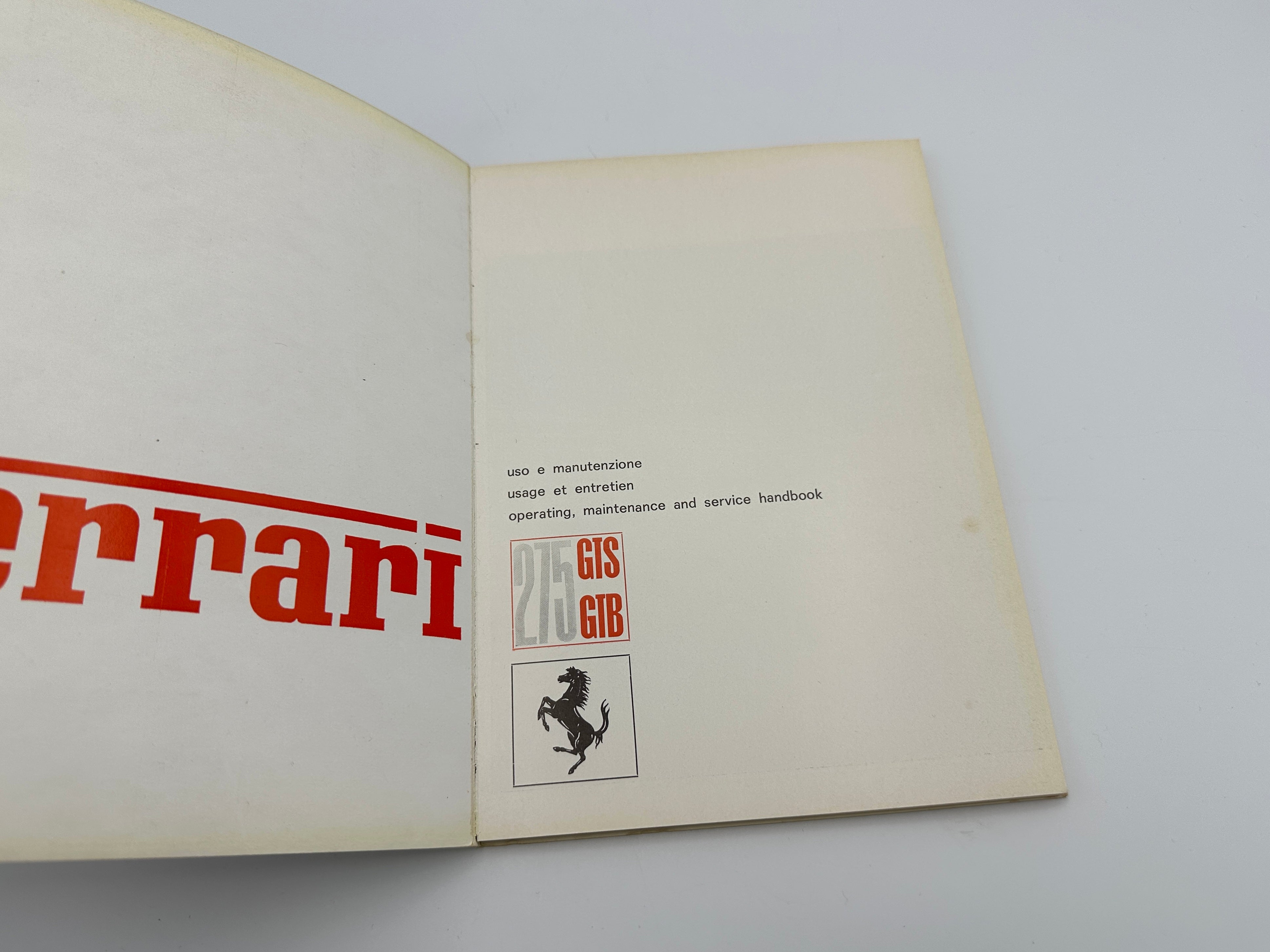 Ferrari 275 GTB/GTS Owner's Manual, Handbook #01/65 - 1965