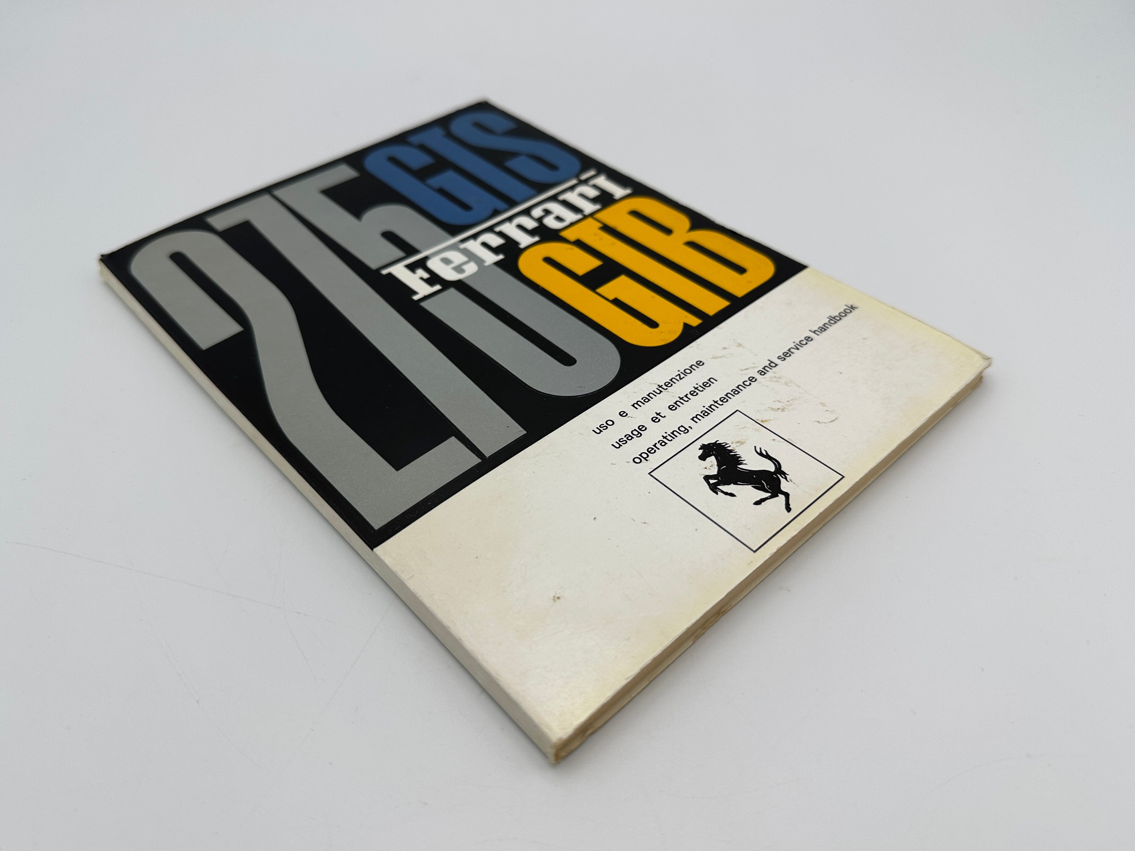 This original 1965 Ferrari 275 GTS/GTB owner’s manual with official print number #01/65 includes content in English, Italian, and French. Printed in Italy, it offers comprehensive operating and maintenance information for these iconic 1960s models.