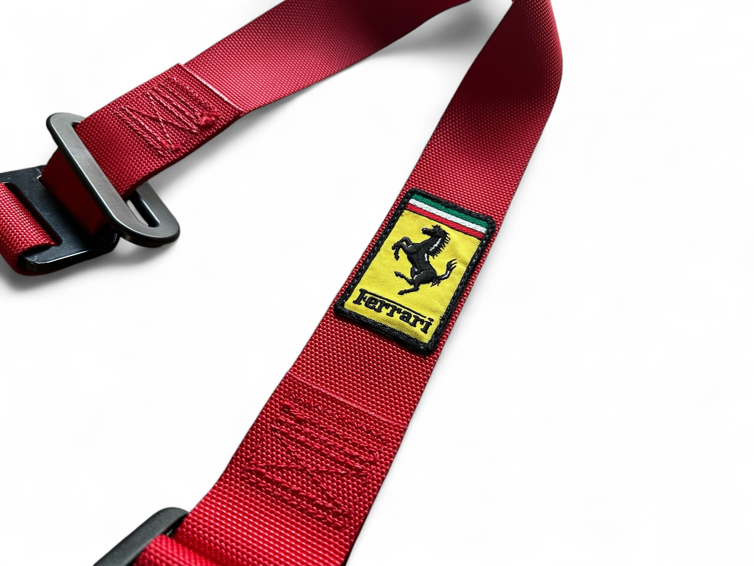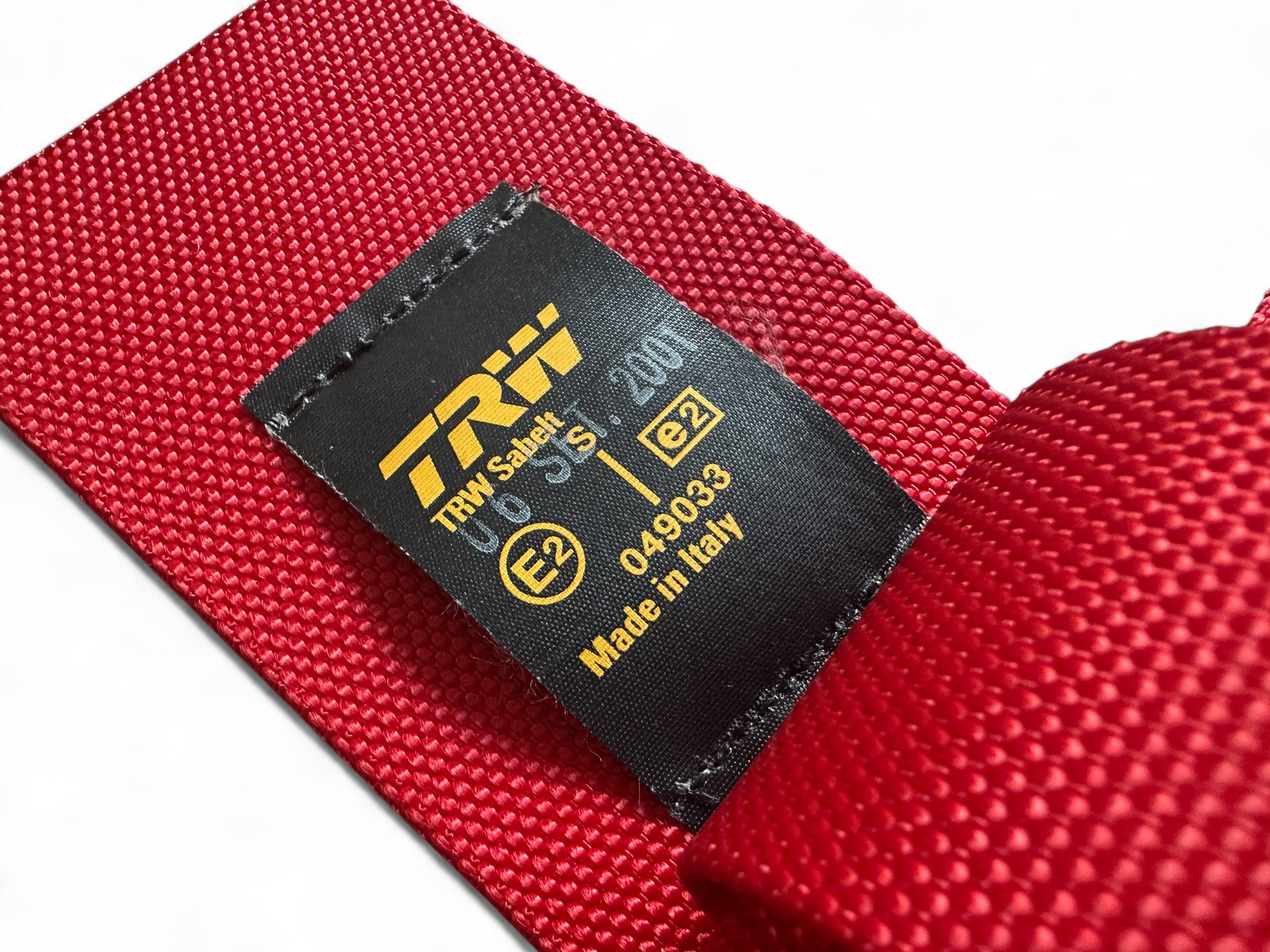 Original red 4-point harness seatbelt made by Sabelt for the Ferrari 360 and 360 Challenge Stradale. Manufactured in Italy and dated 6 September 2001, this official spare parts is labelled by TRW Sabelt.