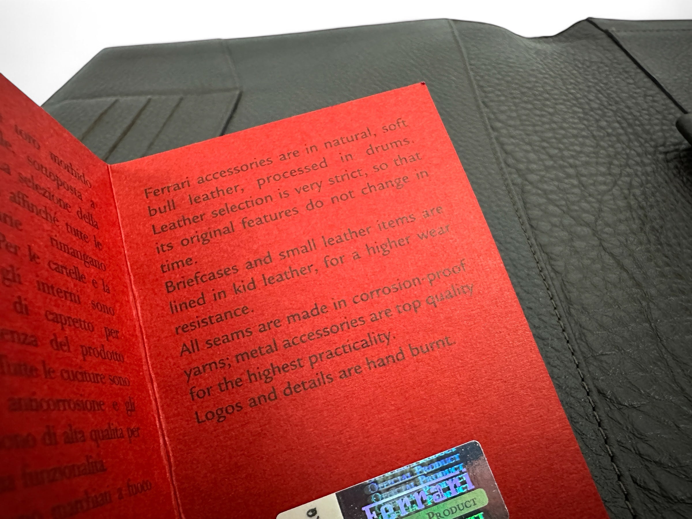 Original Ferrari business organizer from the official accessory range, crafted in soft black leather. Designed as a functional meeting folder, it reflects Ferrari’s signature quality and attention to detail.