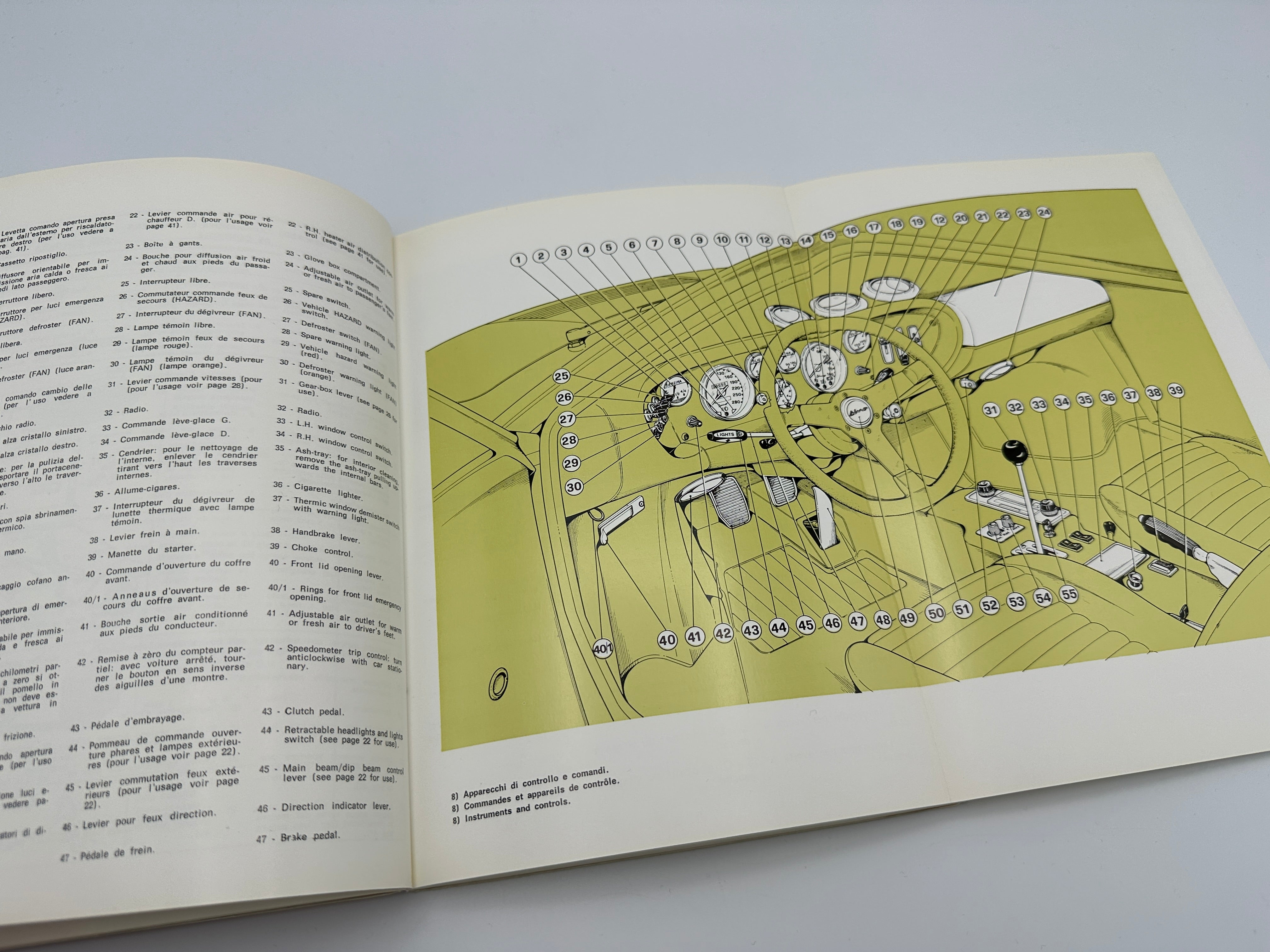 This original Ferrari Dino 208 GT4 Owner’s Manual, print number #102/75, from 1975 is a key resource for owners of this model. It provides detailed instructions on operation, maintenance, and technical specifications. This manual is an important document for those looking to maintain the authenticity and performance of their Dino 208 GT4.