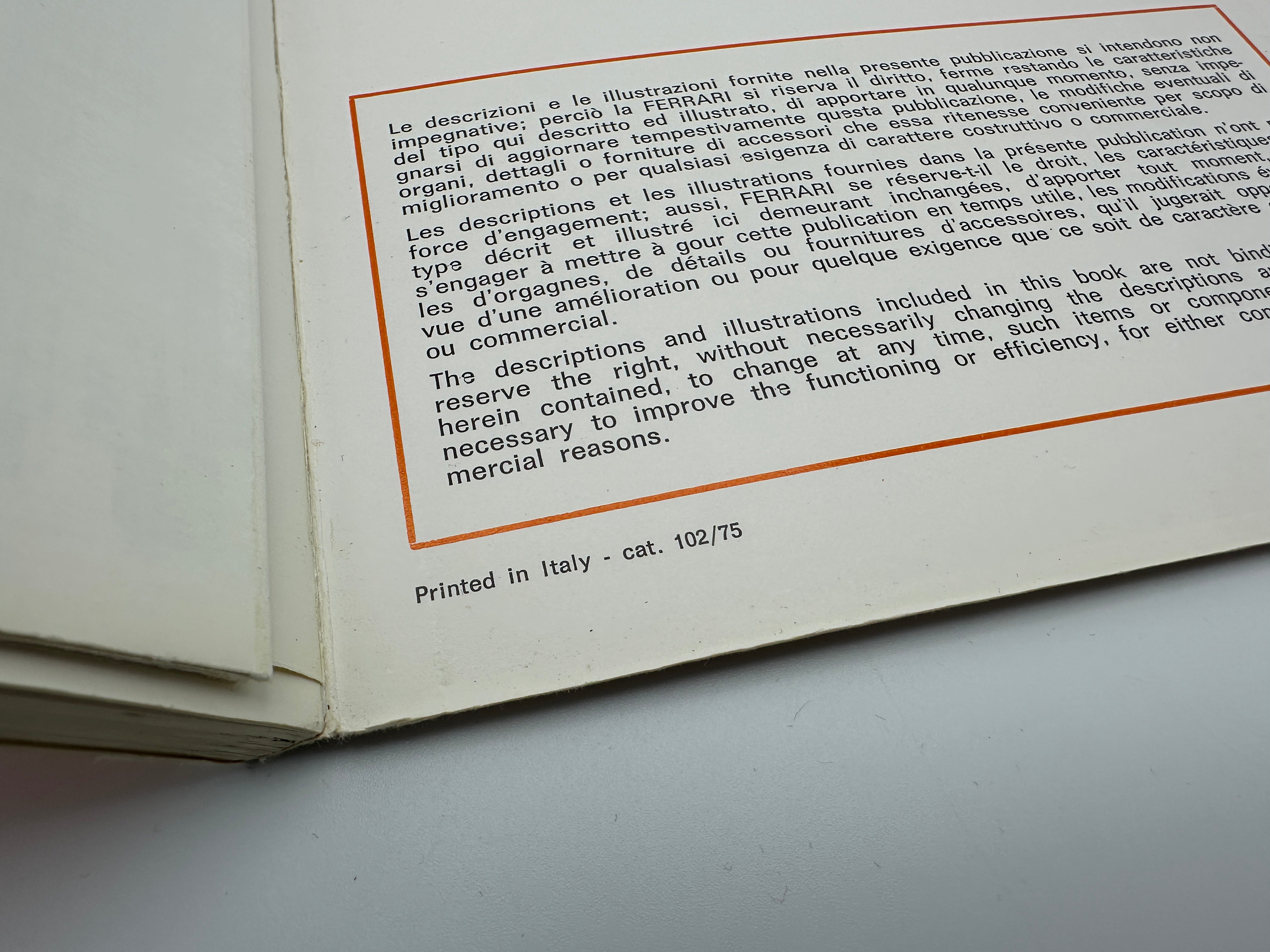 Ferrari Dino 208 GT4 Owner’s Manual #102/75 – 1975