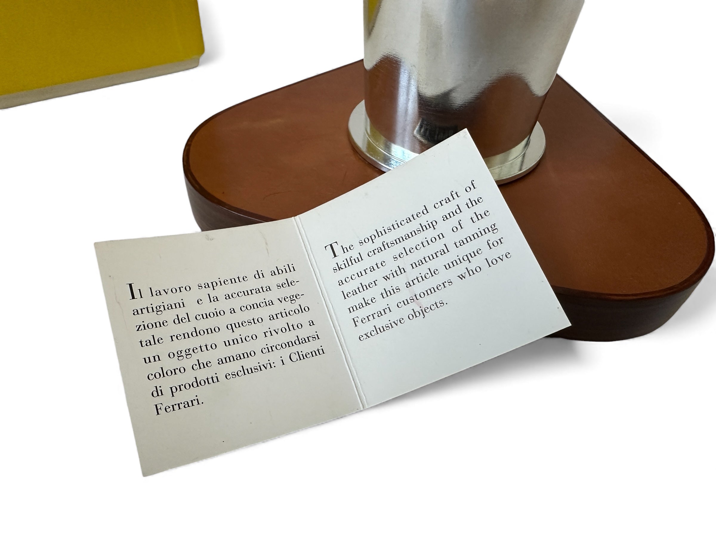 Nicely presented on high-quality leather by Schedoni, known for crafting Ferrari accessories.