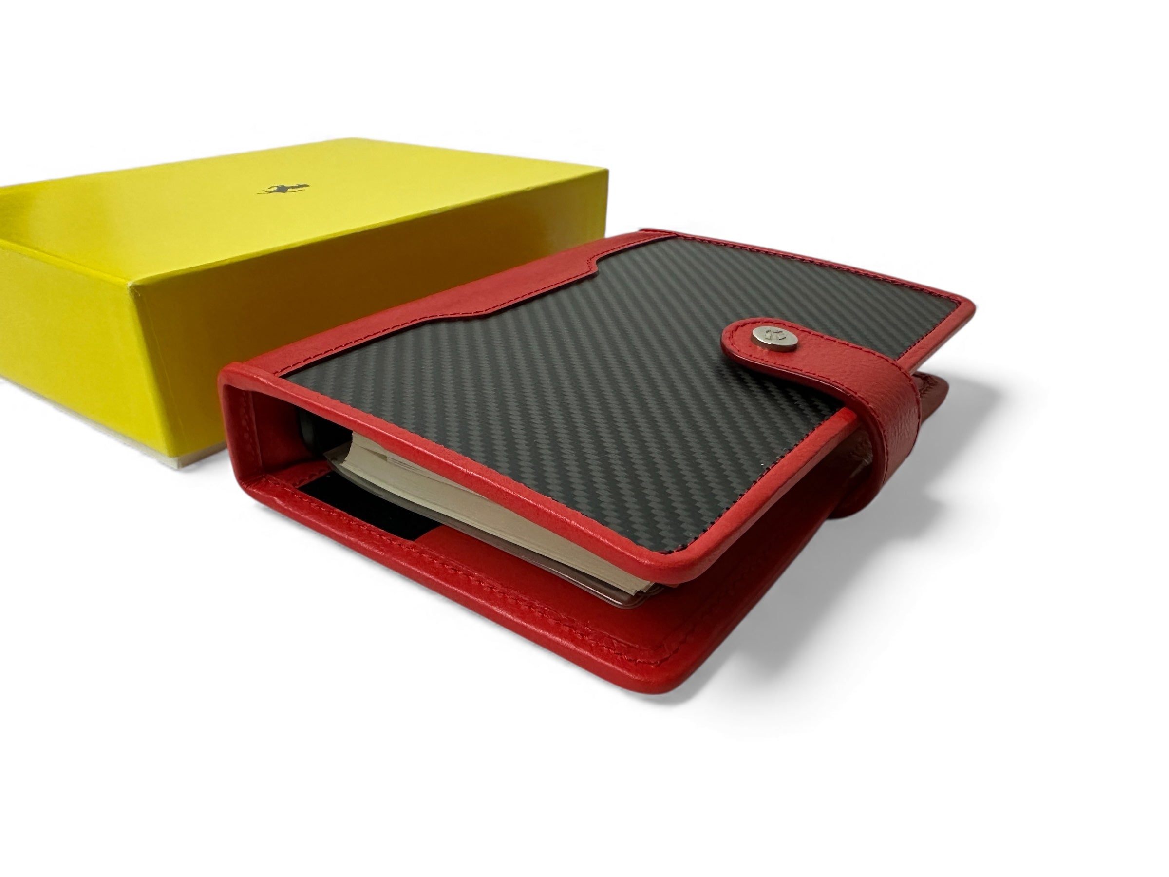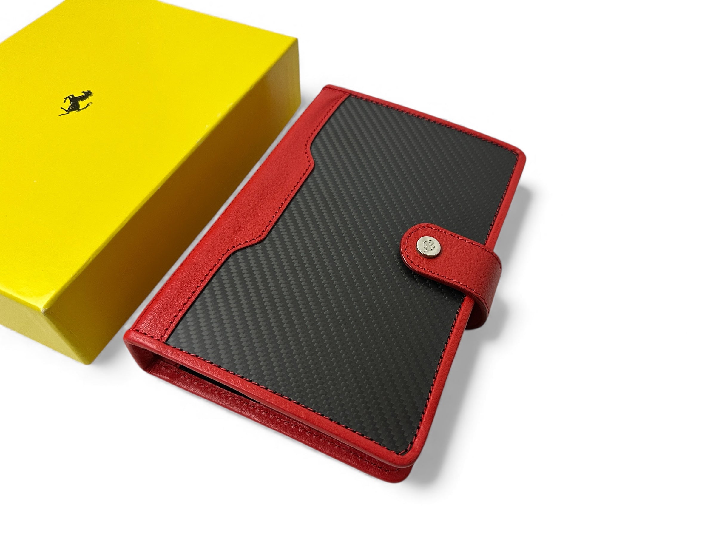 Ferrari F399 Red Leather Agenda Holder, Organizer - Carbon Insert - Official Accessory