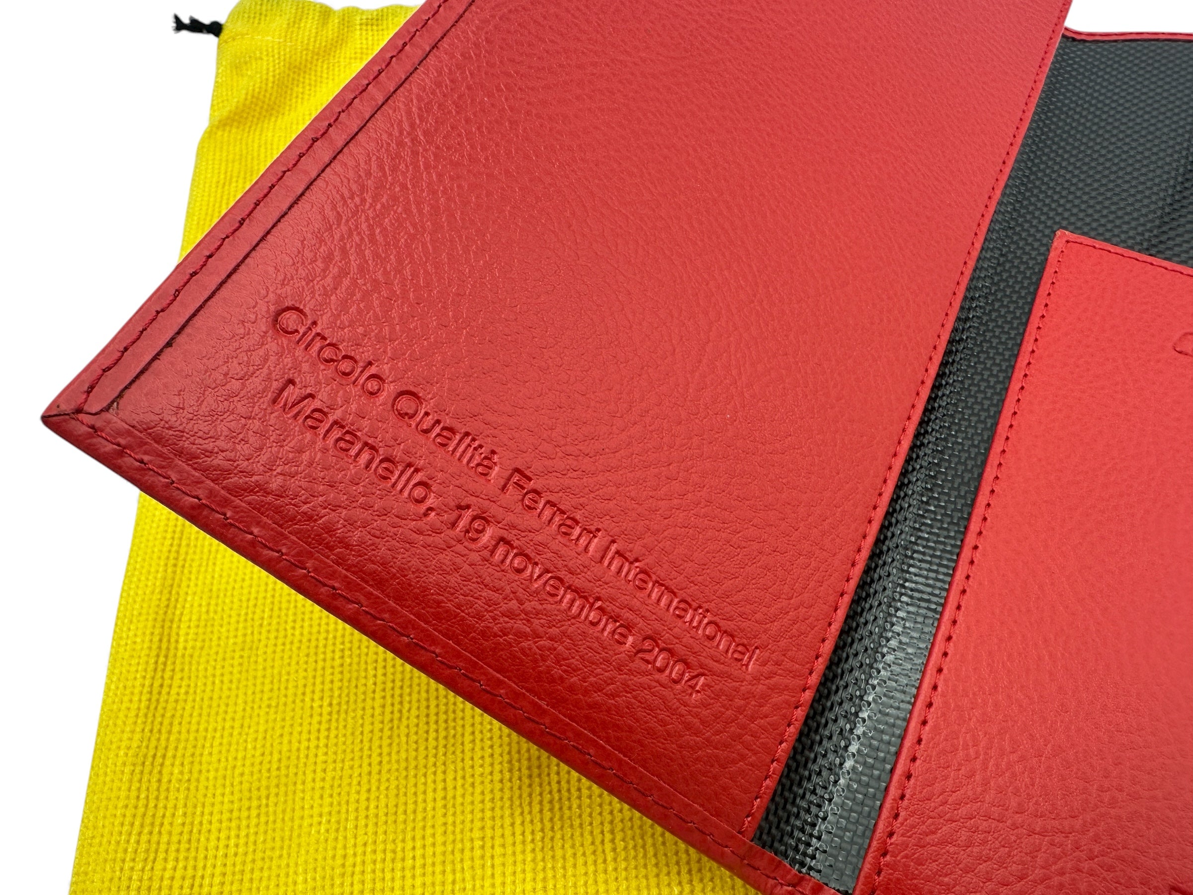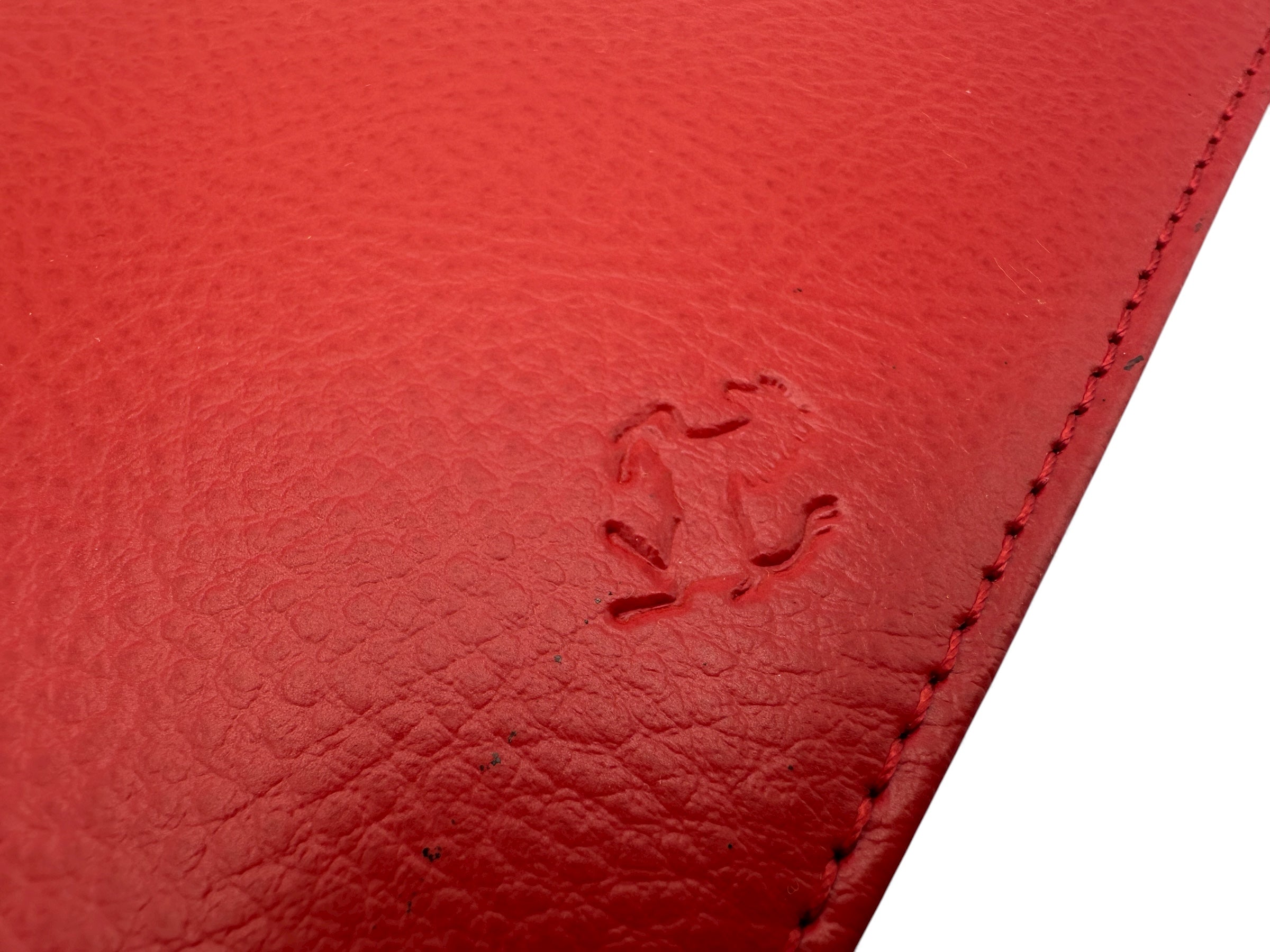 Original Ferrari red leather wallet made by Schedoni for the introduction of the Ferrari F430 and 612 Scaglietti. Crafted in Italy from high quality leather, this elegant pouch features the refined detailing typical of Schedoni’s craftsmanship. It comes complete with its original dust cover.