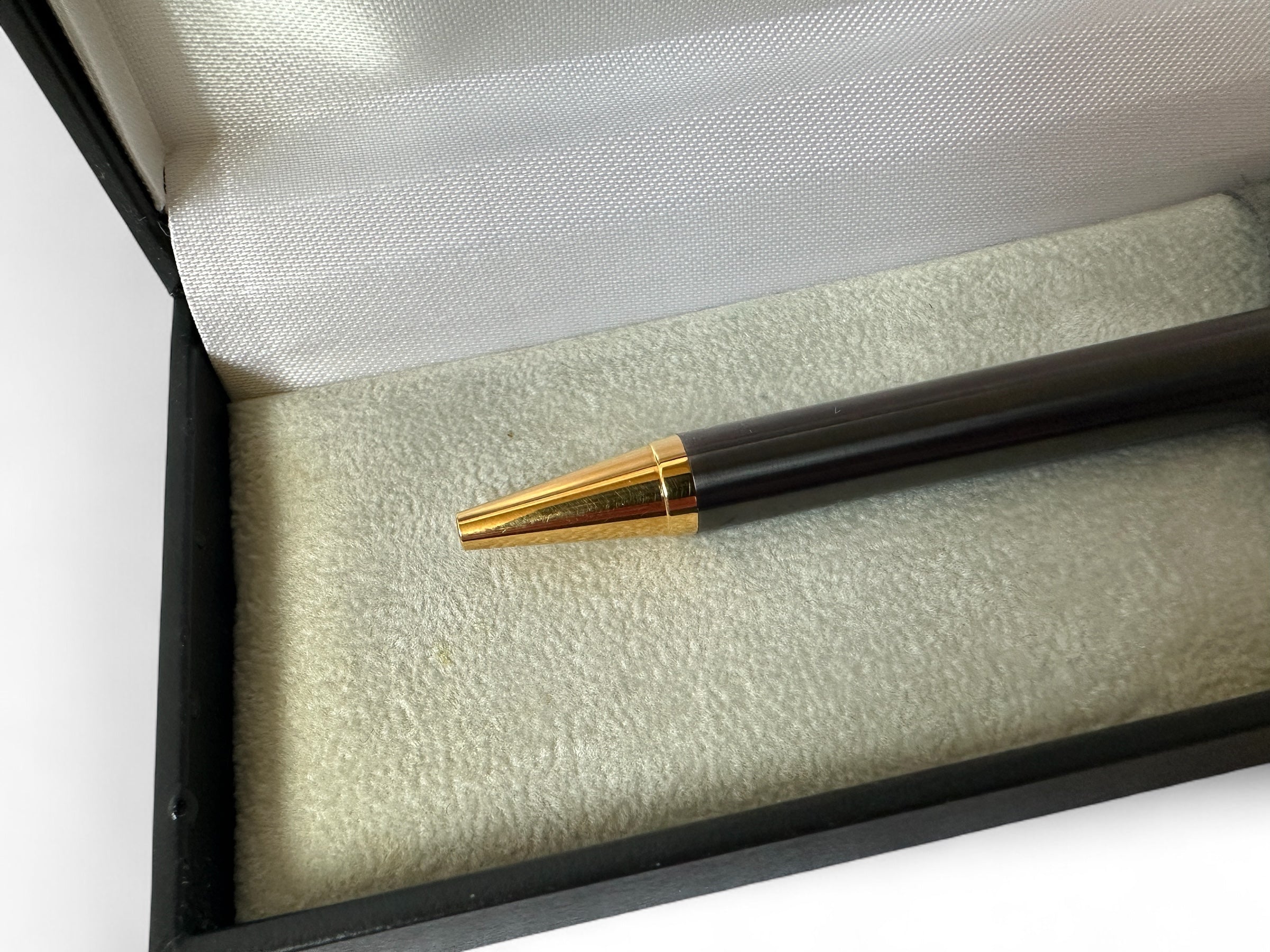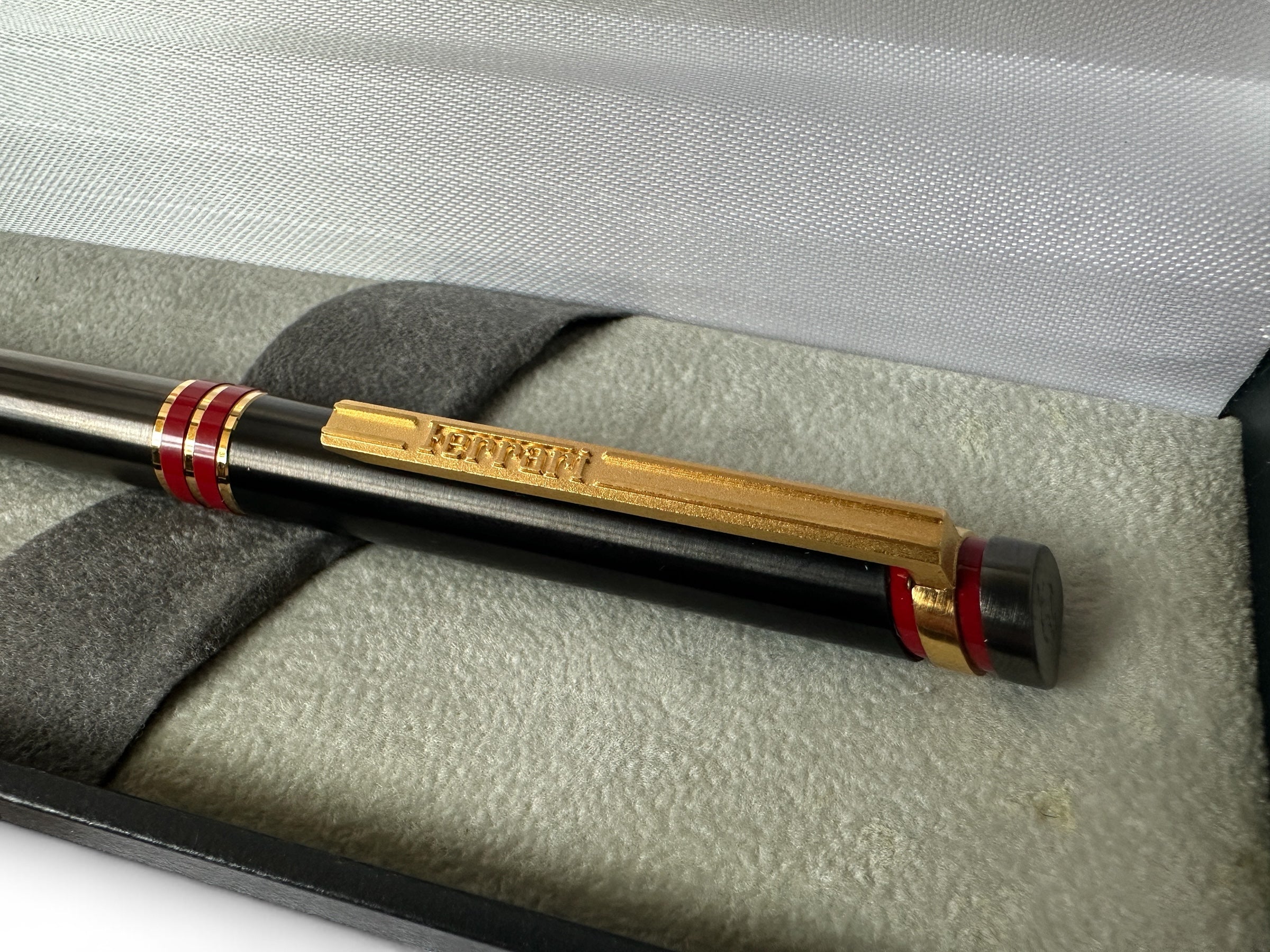 Original late 1980s Ferrari ballpoint pen from the Formula series, produced by Aurora. This high-quality pen was designed to complement the Ferrari Formula series accessories of the era, including the Cartier watches, lighters, sunglasses, and more.