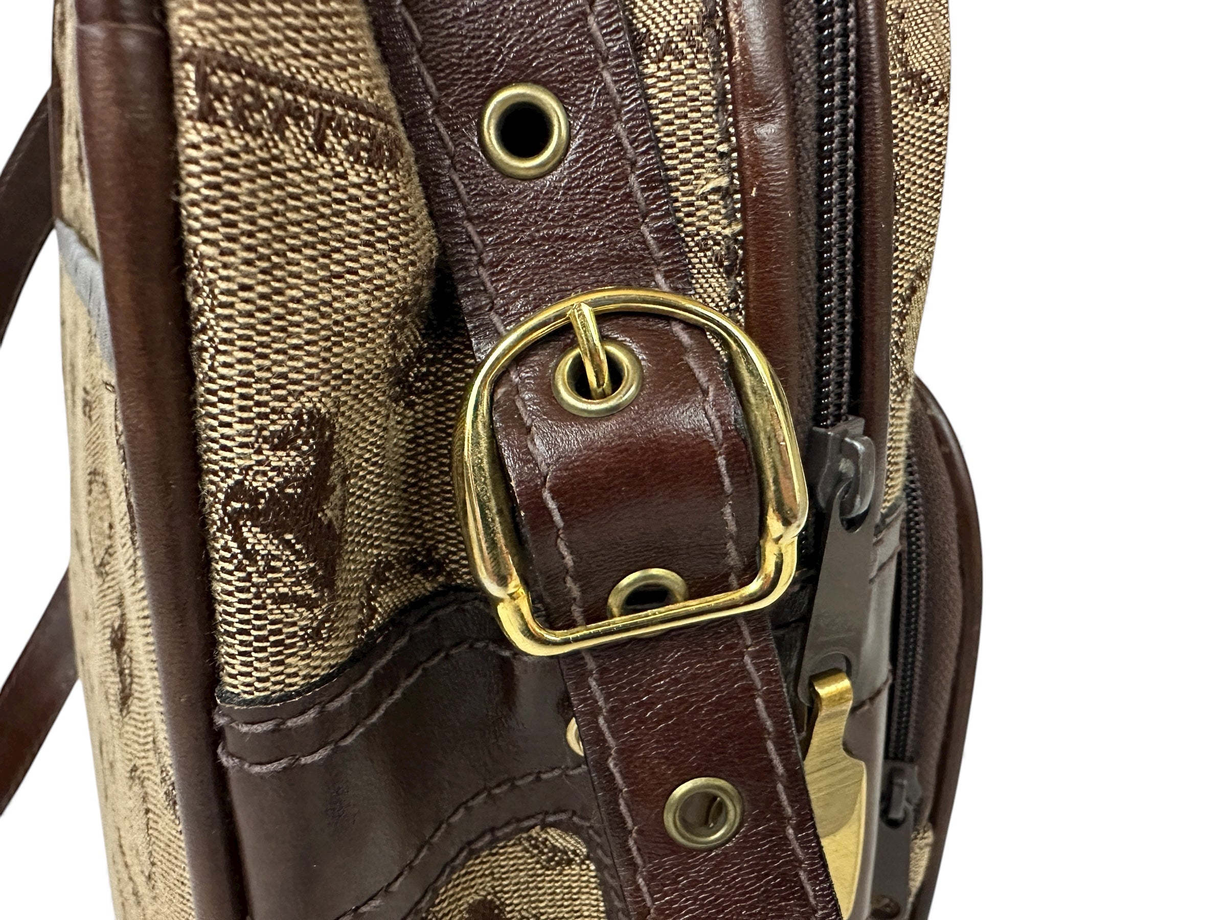 Original Ferrari shoulder bag made in Italy by Italstyle, specially designed for Ferrari. Crafted from high-quality cloth with leather finishing, it features the classic Prancing Horse logo with laurel wreath print. This official Ferrari accessory dates from approximately the 1970s to 1980s and reflects the elegant Italian style of the era.
