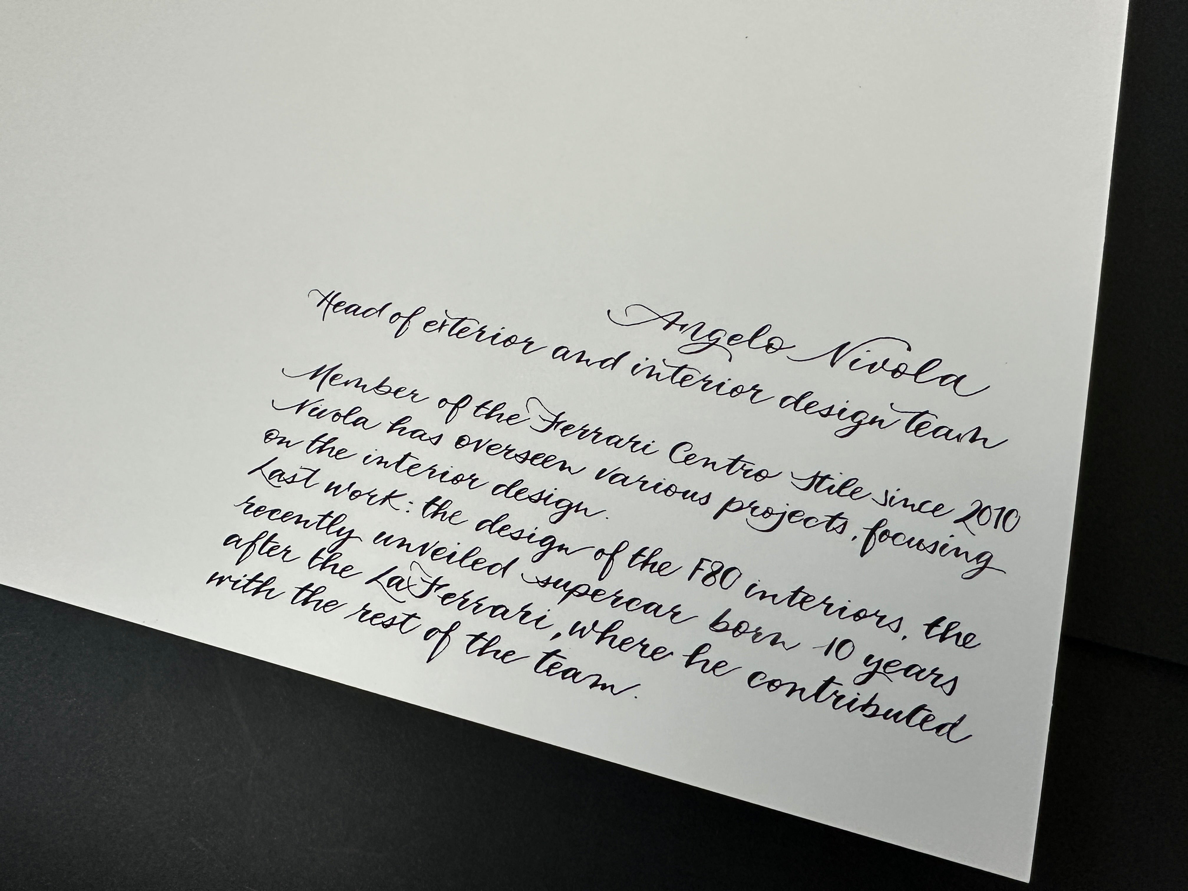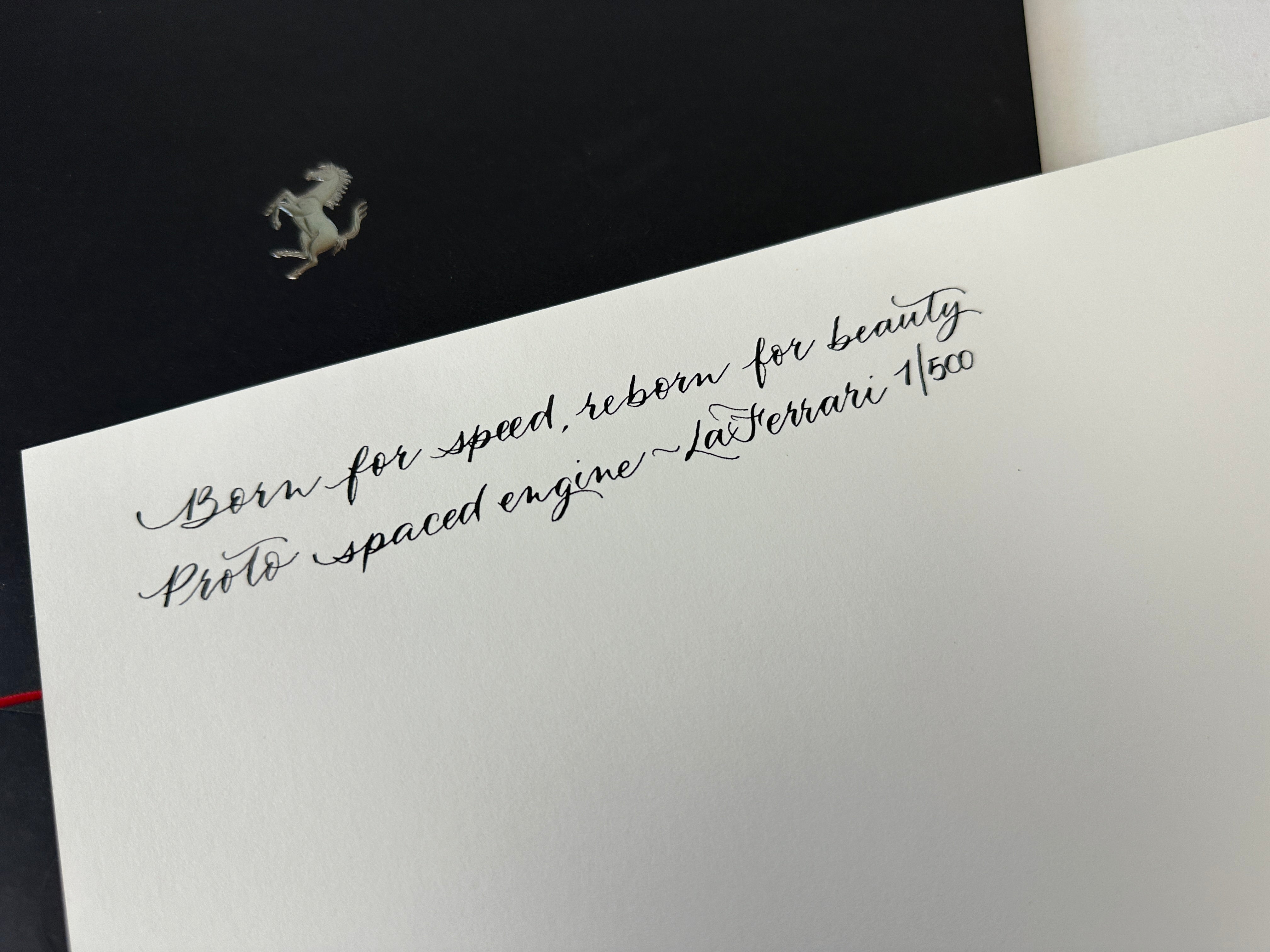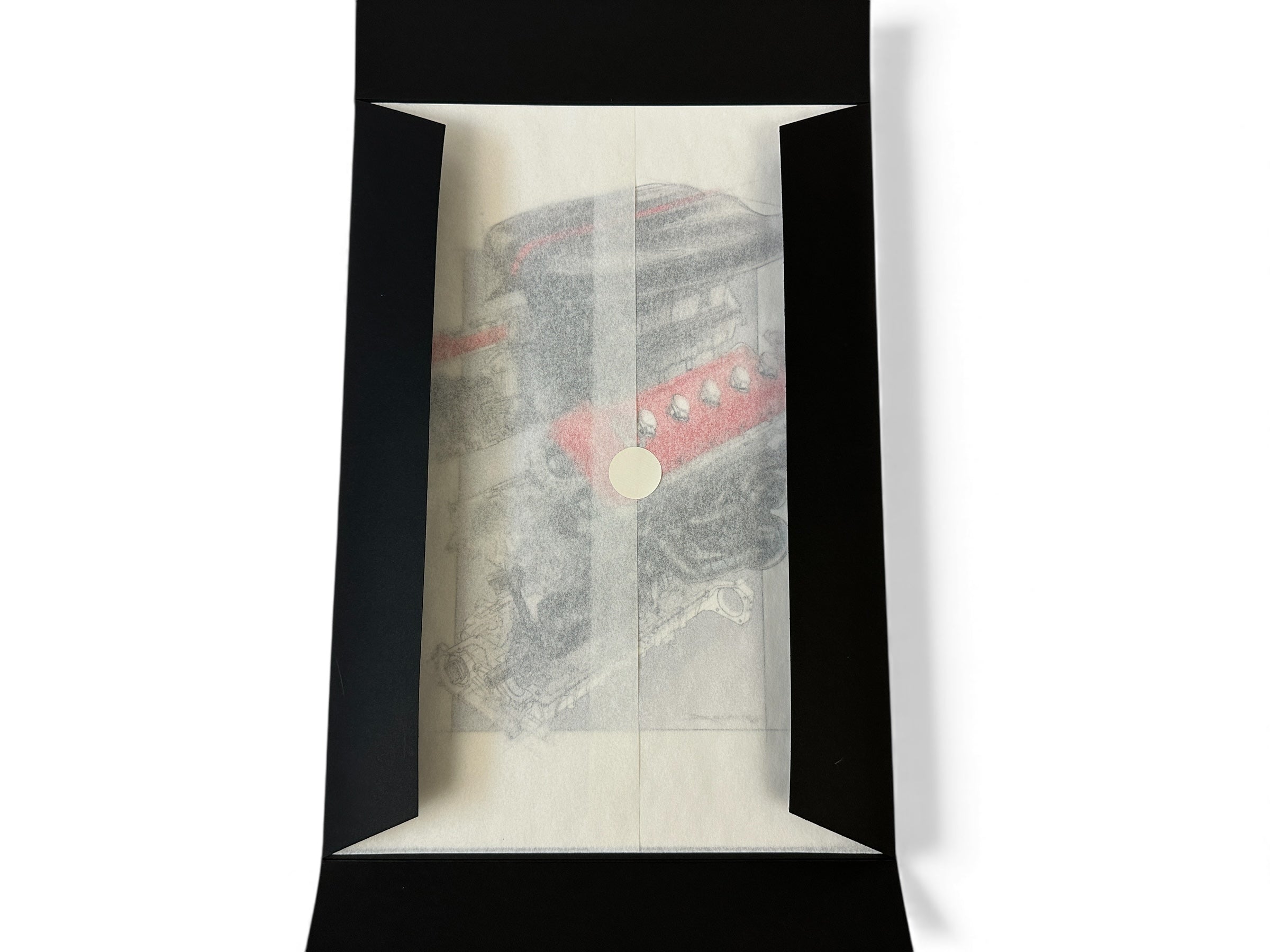 Very rare lithograph featuring the LaFerrari engine, illustrated by Angelo Nivola of the Ferrari design team. This exclusive artwork was released following the introduction of the Ferrari F80 and was produced in a strictly limited series of only 500 pieces.