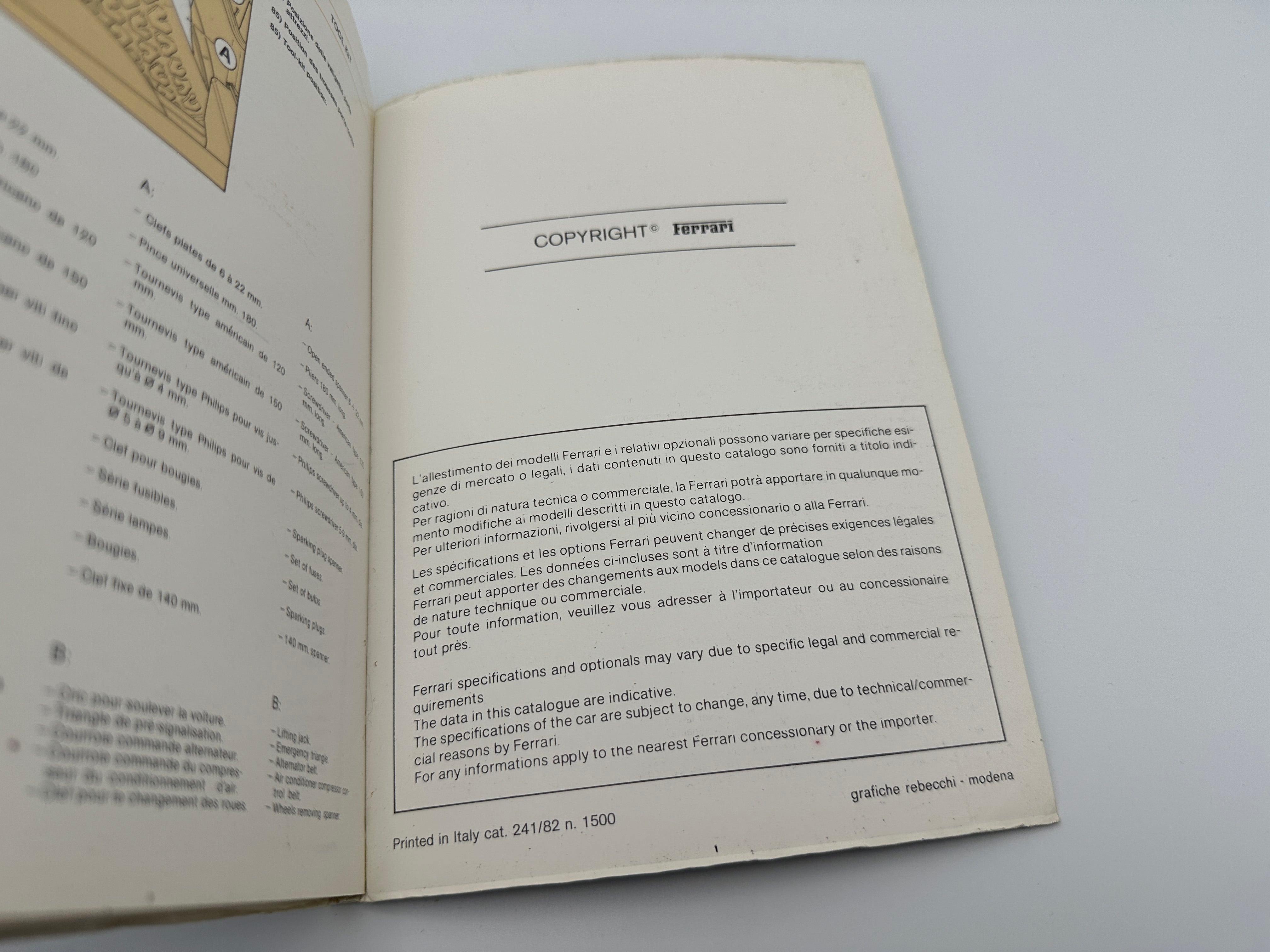 Ferrari Mondial Quattrovalvole Owner’s Manual #242/82 - 1982