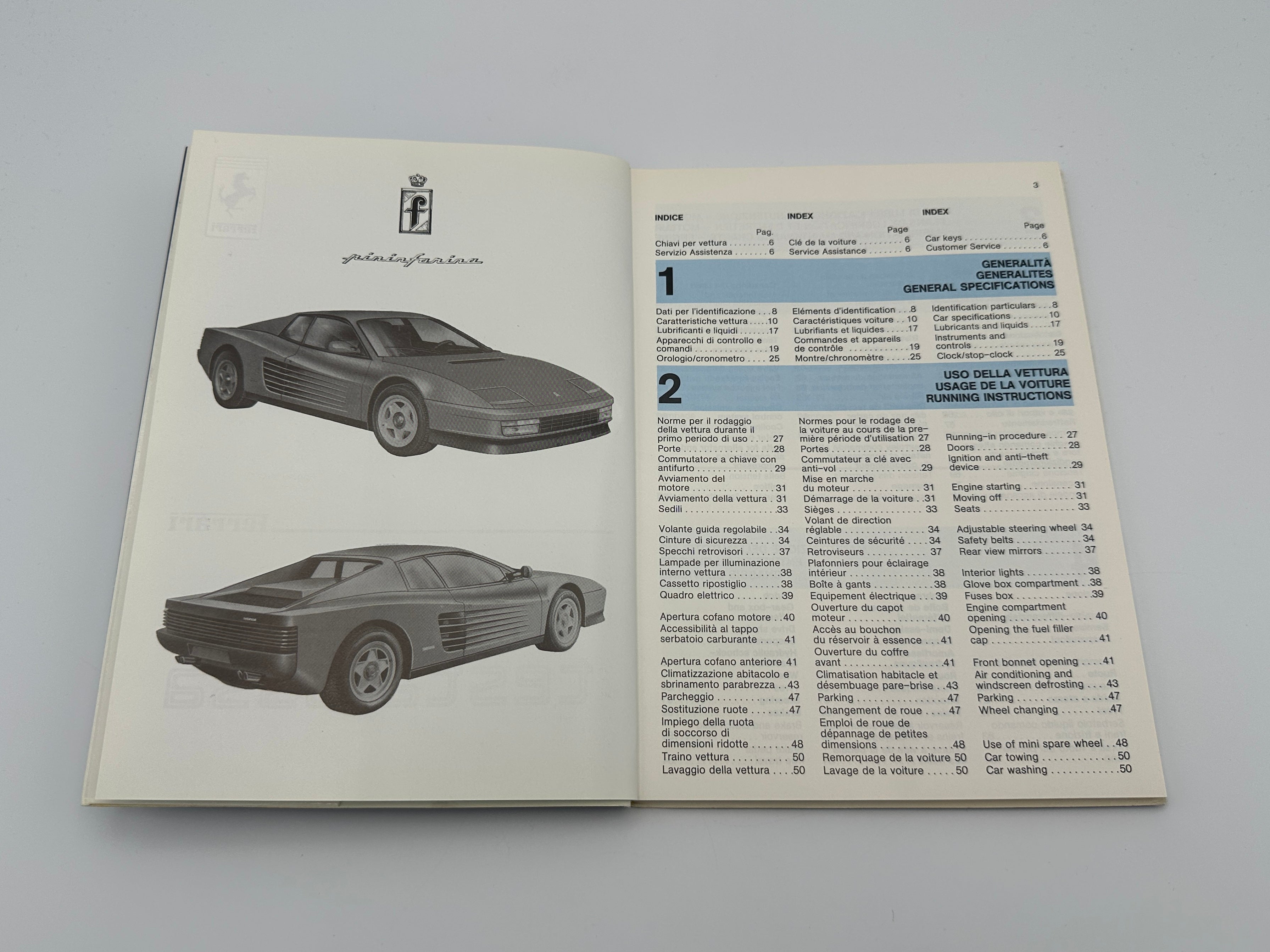 Ferrari Testarossa Owner's Manual, Handbook #456/86 - 1986